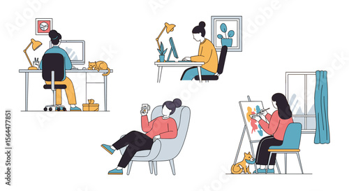 Set of village people activities with different special equipment. Feeding animals, cattle breeding, harvesting wheat, beekeeping, digging, milking. Agriculture, farming. Flat design