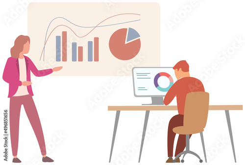 Seamstress sewing on electric sewing machine, vector flat illustration isolated on white background. Tailoring shop, atelier, garment factory, fashion sewing studio, custom clothing.
