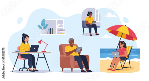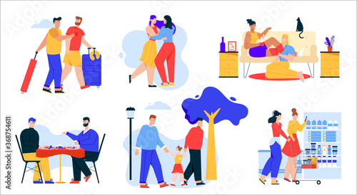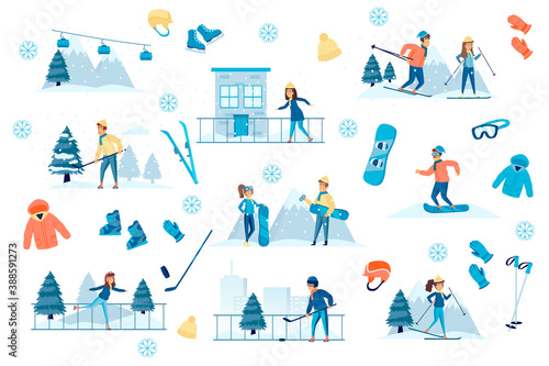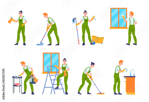Sewing set, vector isolated illustration. Seamstress, clothing designer, dressmaker, customer cartoon characters and tailor tools. Atelier, sewing courses, tailoring shop or fashion salon.