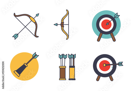 Shooting and archery club logo, label, emblem set, flat vector isolated illustration. Shooting club badges.