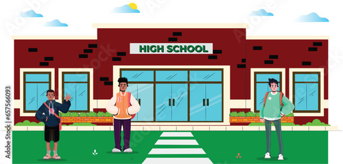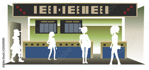 Shopping center with men and women clothing shops, fashion boutiques, flat vector illustration. Mall interior with happy shoppers buying clothes, mobile phone. Shopping mall entrance. Retail store.