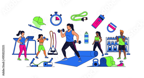 Skate park set, vector flat illustration isolated on white background. Isometric skateboard ramp and other skate park equipment, skaters enjoying skateboarding and roller skating.