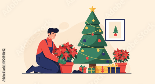 Vector illustration of ski teacher young man training girl. Private lesson. Ski instructor flat style design element.