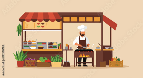 Ski resort vector illustration. Mountain cafe, wooden barrel vat. Winter fun concept flat style design element.