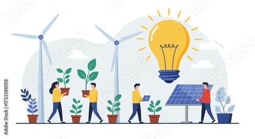 Vector illustration of tiny people putting books and light bulb into big man head. Skill development, brainstorming, innovation, creative thinking, personal growth concept for web banner, website page