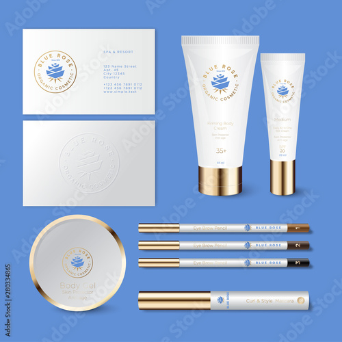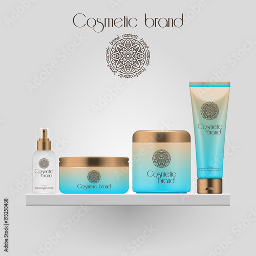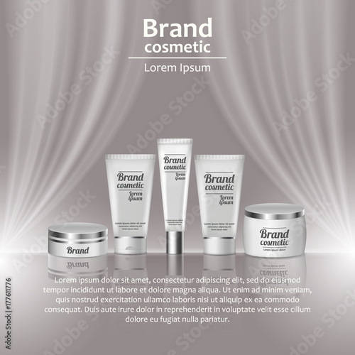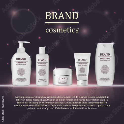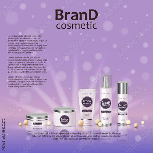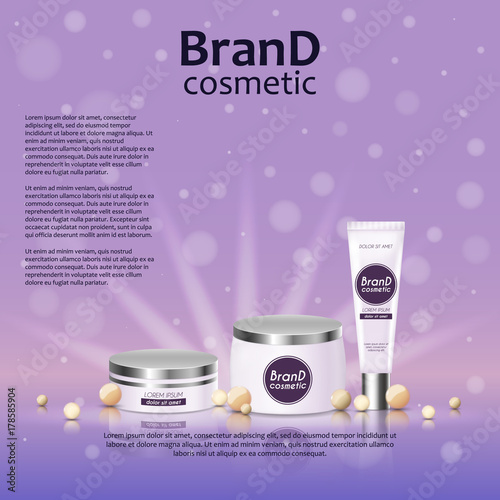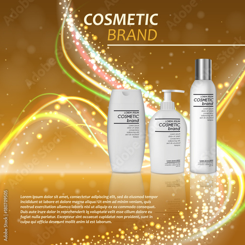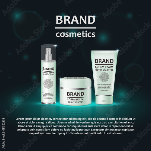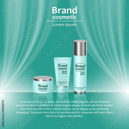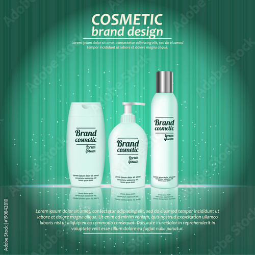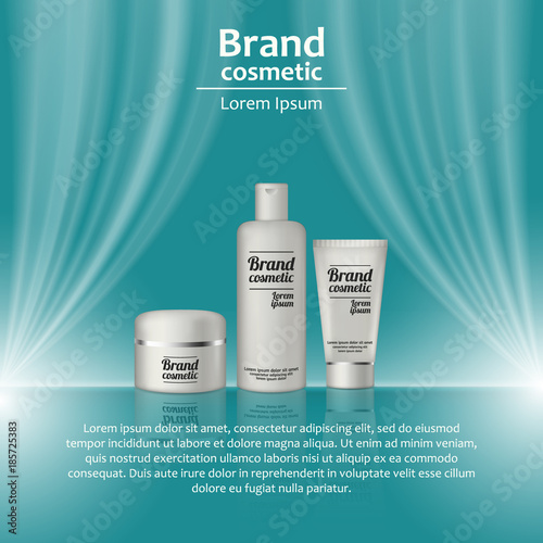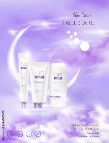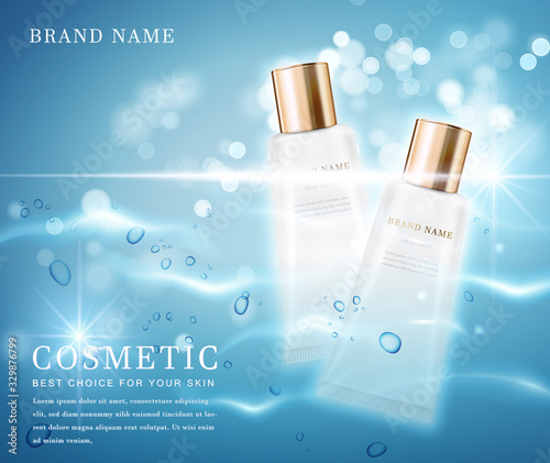 Skin toner cosmetic products ad. Vector 3d illustration. Skin cream bottle template design.