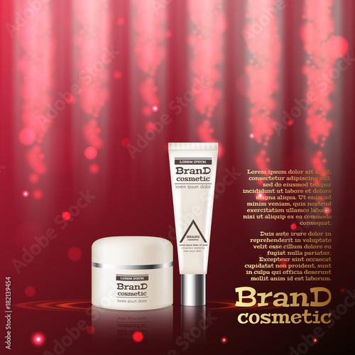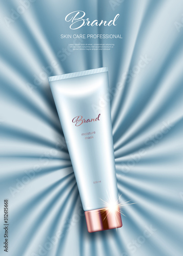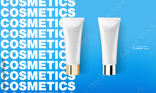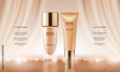 Skin toner cosmetic products ad. Vector 3d illustration. Skin cream bottle template design. Face and body make up tone cream.