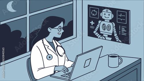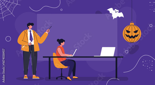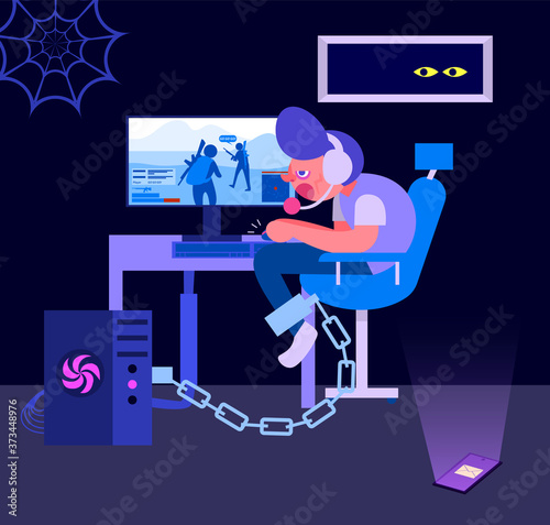 Married couple lying in bed turned away from each other, flat vector illustration. Sleepless woman using smartphone suffering from insomnia. Stress, depression, smartphone addiction, sleep disorder.