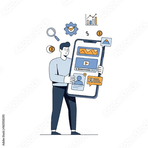 Smart home remote control and monitoring system using smartphone, vector illustration. Wireless home automation technologies concept for web banner, website page etc.