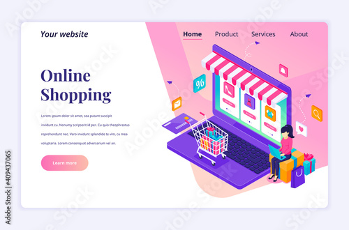 Smart photo album online. Upload photos to cloud storage. Isometric picture gallery. Vector web site design template. Landing page website concept illustration