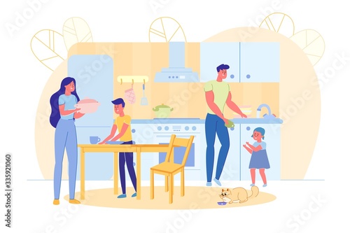 Business people greeting smart robot machine in office. AI and humans working together, flat vector illustration. Artificial intelligence and human collaboration, cooperation.