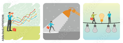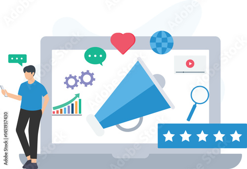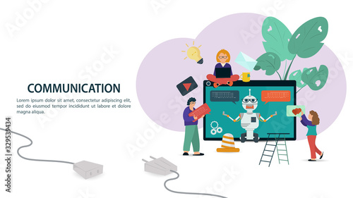Vector illustration of big smartphone with fitness activity tracking application for exercising, running and tiny people doing sports. Smart sports technology concept for web banner, website page etc.