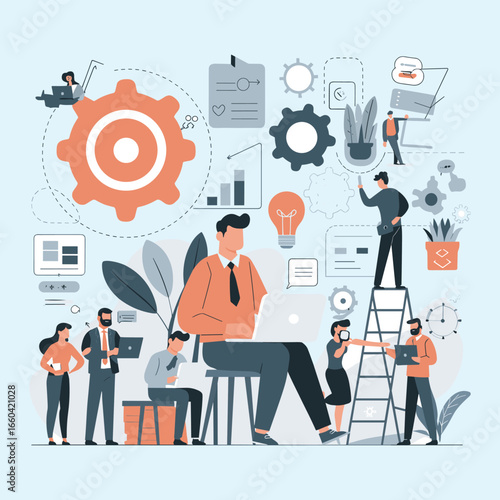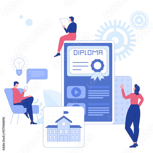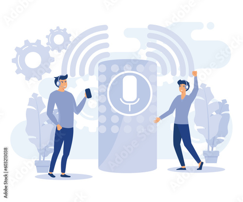 Mobile security, fingerprint on screen, characters with key, lock, vector illustration. Biometric access scanning technology, fingerprint identification.