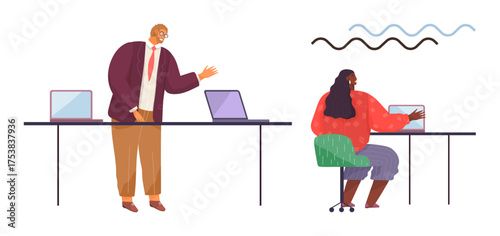 Shoe factory workers micro male and female characters making huge sneaker, vector illustration. Sports shoes manufacturing process, footwear production concept for web banner, website page etc.