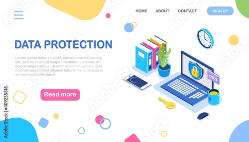 Social media automation landing page website template. Vector isometric illustration. Social media marketing automation concept.