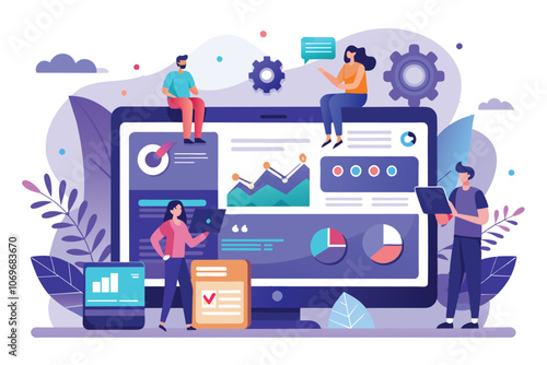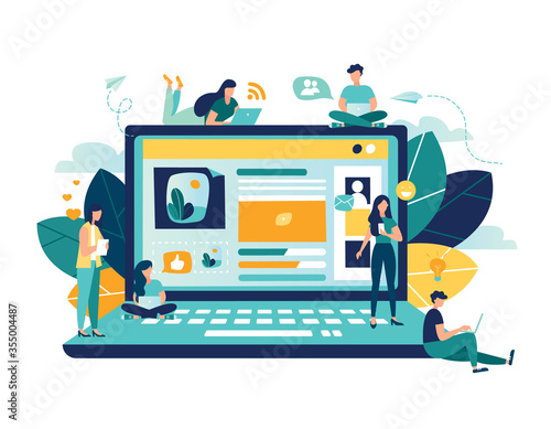 Social media concept vector illustration. People use social media mobile apps and services. Flat design banner for web, marketing material, online advertising.