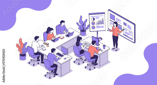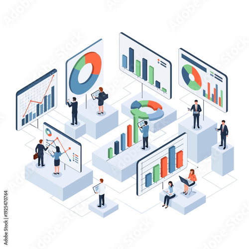 Social media coordination, video production, flat vector isometric illustration. People making video content in studio. Social media campaign.
