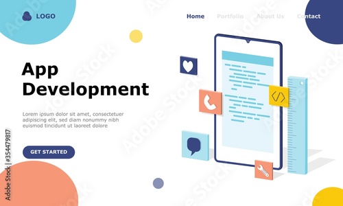 Social media services vector web banner design template. Vector isometric smartphone and social networking communication technology symbols.
