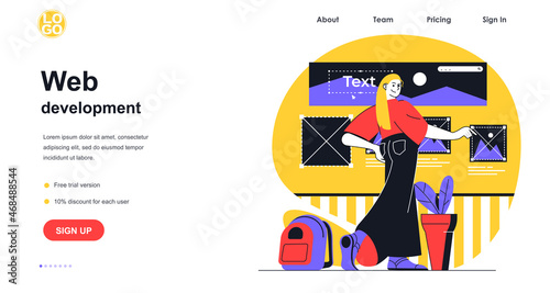 Social networks vector website template, web page and landing page design for website and mobile site development. Young man surfing the net, social networking symbols such as like, hashtag etc.