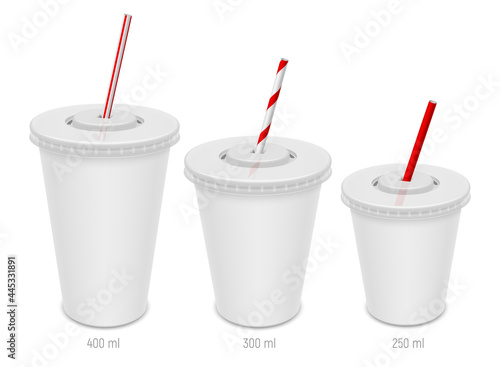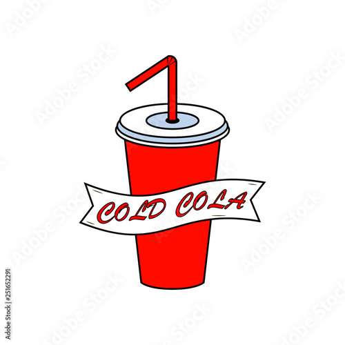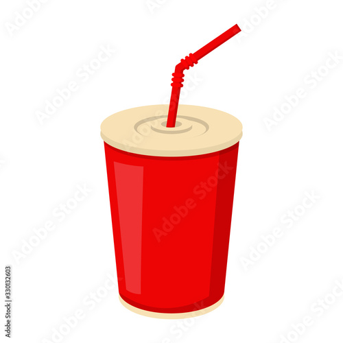 Soda drink cup with straw vector icon. Takeaway beverage in disposable container package isolated on white background