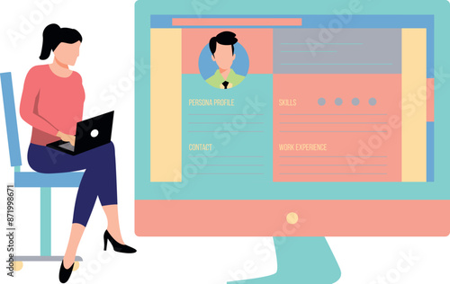 Vector illustration of programmer male in headphones working on computer, testing software. Tester, creative team member flat style design element.