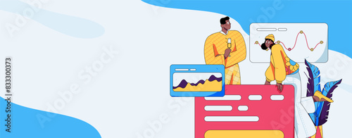 Vector illustration of solar power panel and consumers cartoon characters. Alternative energy concept for web banner, website page etc.