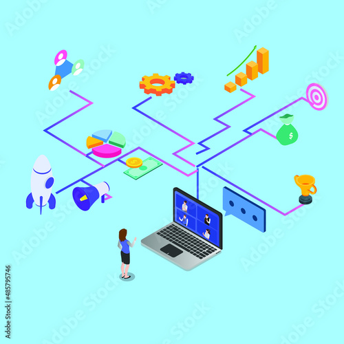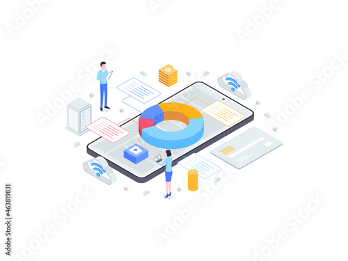 Solving in steps, landing page design, website banner template, flat vector isometric illustration. Math equation, math problem solver. Online calculator.