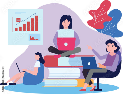 Female sound designer, engineer wearing headphones creating, recording music, flat vector illustration. Sound production studio.