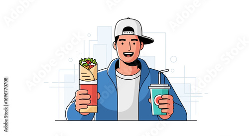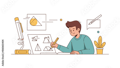 Sound engineer creating podcast on computer vector icon isolated on white background