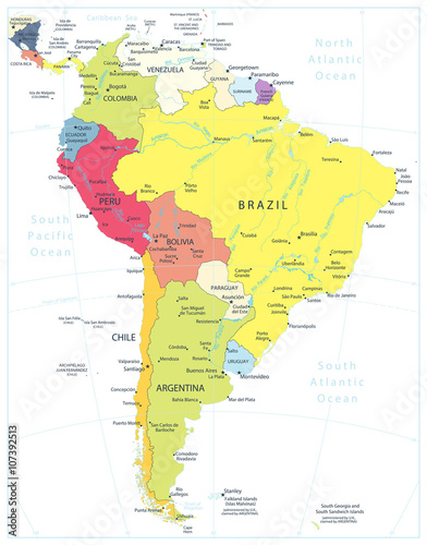 South America climate zones, vector geographic infographics. Climatic regions of South America continent, geography science.