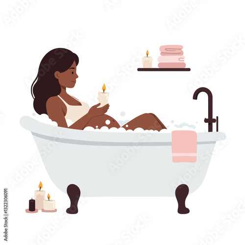 Vector illustration of young women enjoying jacuzzi. Spa people flat style design element, icon isolated on white background.