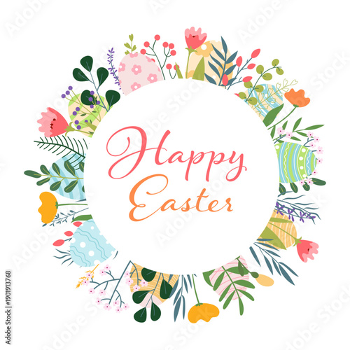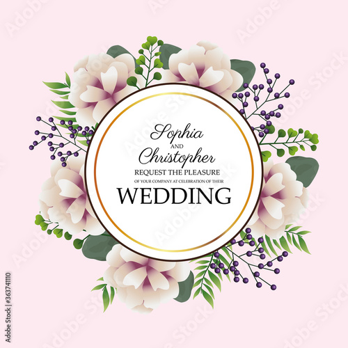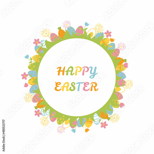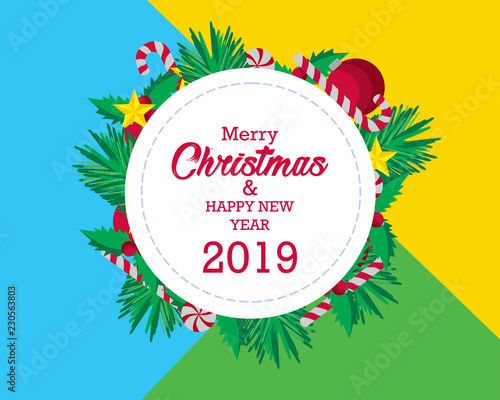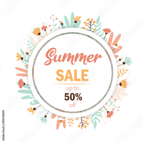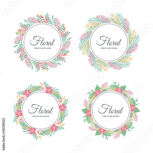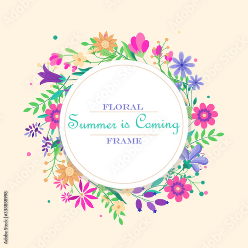 Spa salon round frame, vector illustration. Spa center card, label template with skin care and beauty accessories bamboo stalks, palm leaves, stones, massage oil, cosmetics, towels, aroma candles etc.