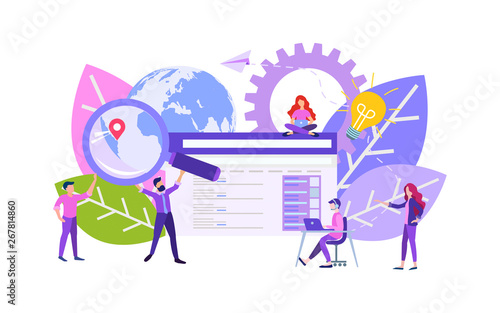 Male and female characters preparing rocket and astronaut for space travel, looking through telescope, vector flat style design illustration. Space exploration, rocket launch, astronomy science.