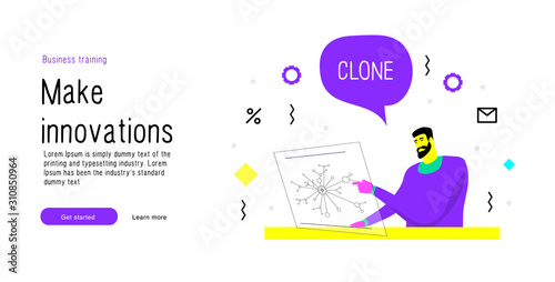 Space vector website template, web page and landing page design for website and mobile site development. Spacewalk, space expedition, travel concept.