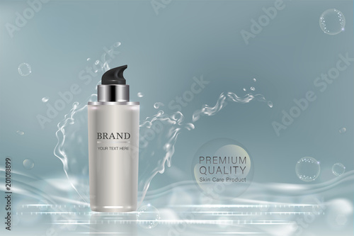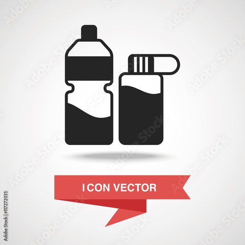Vector illustration of mineral water bottle with glass full of water and sports bottle. Drinking water is most popular beverage for healthy lifestyle. Flat design