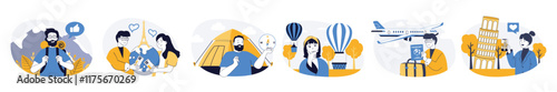 Special appearance, skin problem people. Landing page design, website banner template set, flat vector illustration. Female characters with eye patch and pimples on face looking in the mirror.