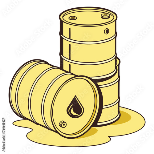 Spill chemical accident vector. Isometric barrel with danger radioactive waste. Industrial toxic material leak isolated on white background. Risk of environment contamination, pollution and ecology hazard