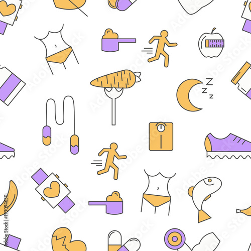 Sport food seamless pattern. Vector modern thin line flat design. Healthy lifestyle, weight loss, dieting concept.