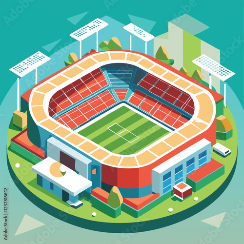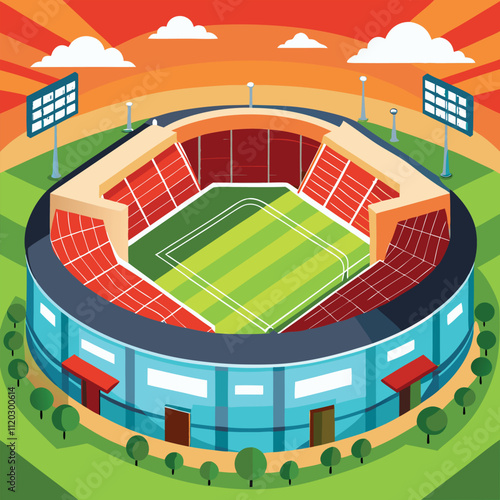 Sport stadium vector isometric icon set. Roller park, Mix boxing, Cricket and Athletics concept design elements. Outdoor sports venues for championships, training, matches etc.