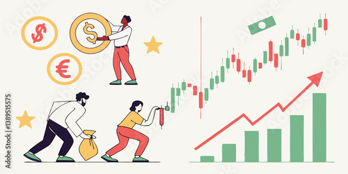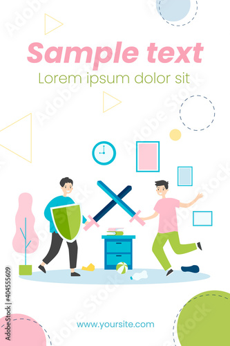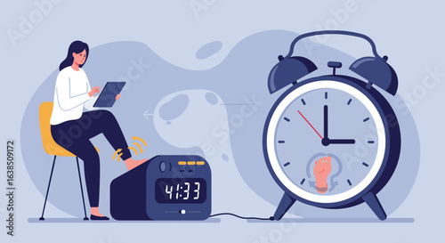 Huge stopwatch and people running, doing yoga, vector illustration. Sport time, healthy lifestyle, fitness, gym workout concept for web banner, website page etc.