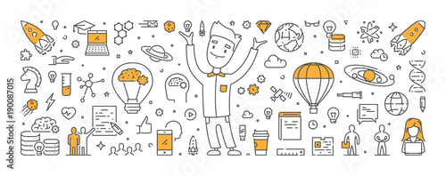 Sports nutrition advertising vector illustration. Modern thin line flat style design with sport food, dieting, healthy eating symbols, icons for website banners, presentation and printed materials.