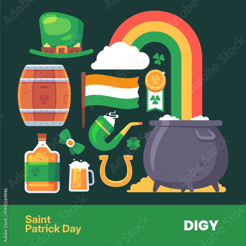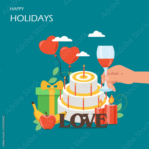 Sports nutrition concept vector illustration. Whey protein, shaker, banana and apple fruits, multi vitamin capsules. Flat style design element for website template, poster banner etc.