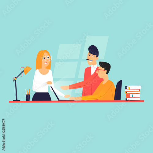 Vector illustration of father and his son training together with dumbbells. Childcare and parenting concept flat style design element.