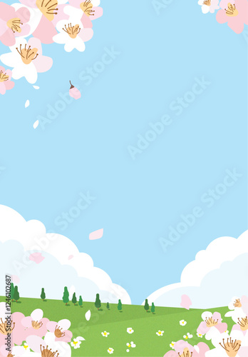 Happy couple in love standing on floral wave, vector illustration in paper art craft style. Spring couple date composition for Valentine Day card, poster, banner, etc.