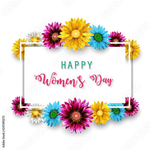 Spring floral round frame, vector illustration in paper art craft style. Beautiful seasonal composition with papercut flowers for card, poster, banner, etc.