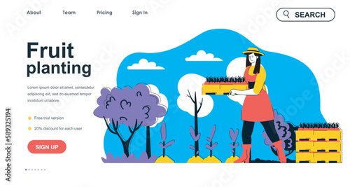 Vector illustration of tiny people gardeners growing big potted plants using garden tools such as watering can, spade etc. Spring gardening, plant care concepts for web banner, website page etc.