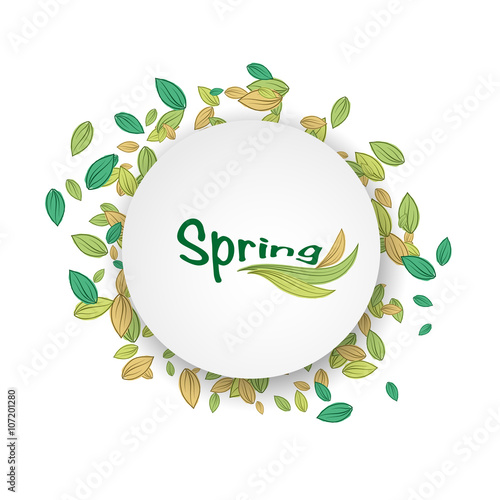 Green foliage decorative frame Spring sale creative hand lettering typography, vector illustration in paper art craft style. Seasonal spring sale promotion banner, poster template.