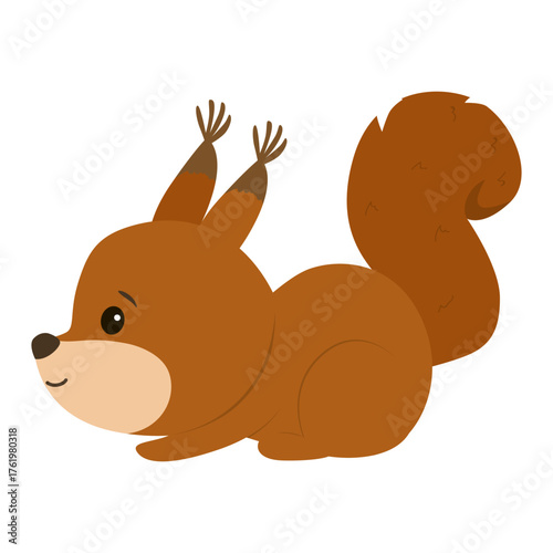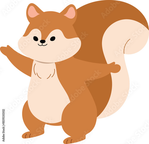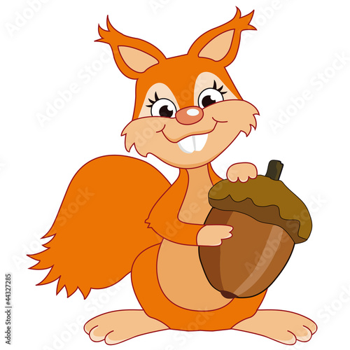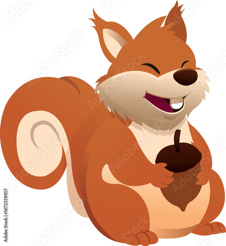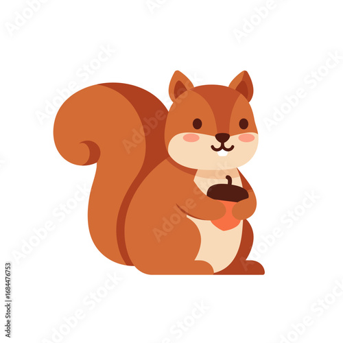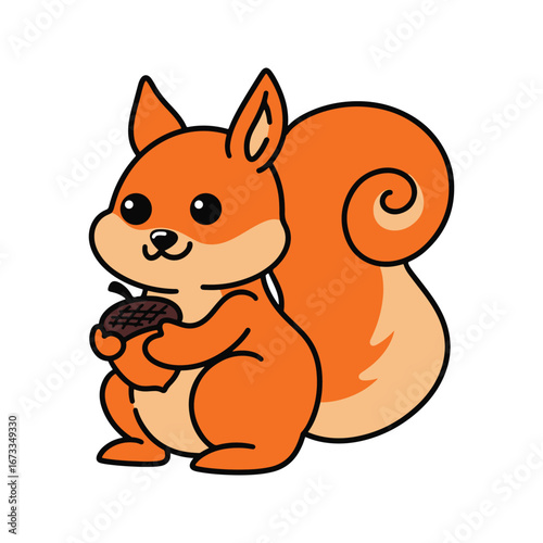 Squirrel vector. Cute forest animal cartoon character illustration. Chipmunk with autumn nuts harvest icon isolated on white background