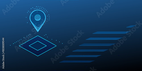 Stairway to business growth, finance target, vector poster banner design template. Low poly art, polygon wireframe mesh. Business achievement, goal, path to success.