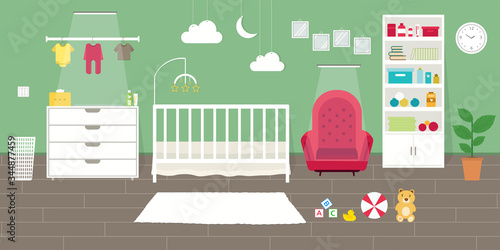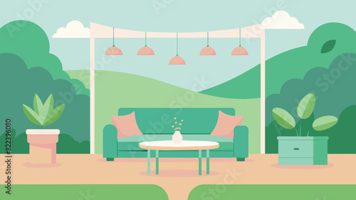 Home interior for stay home and do yoga theme poster, flyer, banner, vector flat style design illustration. Online yoga, stay at home in quarantine. Coronavirus COVID-19 disease spread prevention.